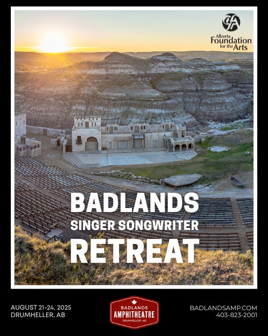 In August of 2025, supported by the Alberta Foundation for the Arts, the Badlands Amphitheatre brought together female singer/songwriters to learn, create, and connect in a supportive setting at the Badlands Amphitheatre. The goal was simple: give artists space to grow their skills, meet new collaborators, and feel encouraged in their work.